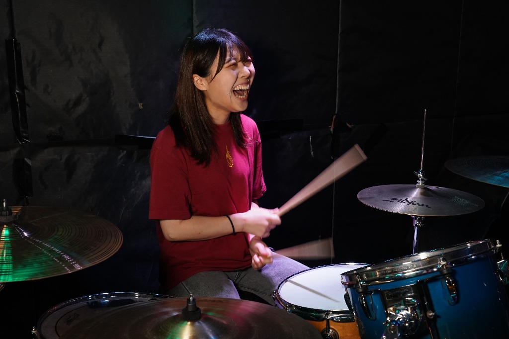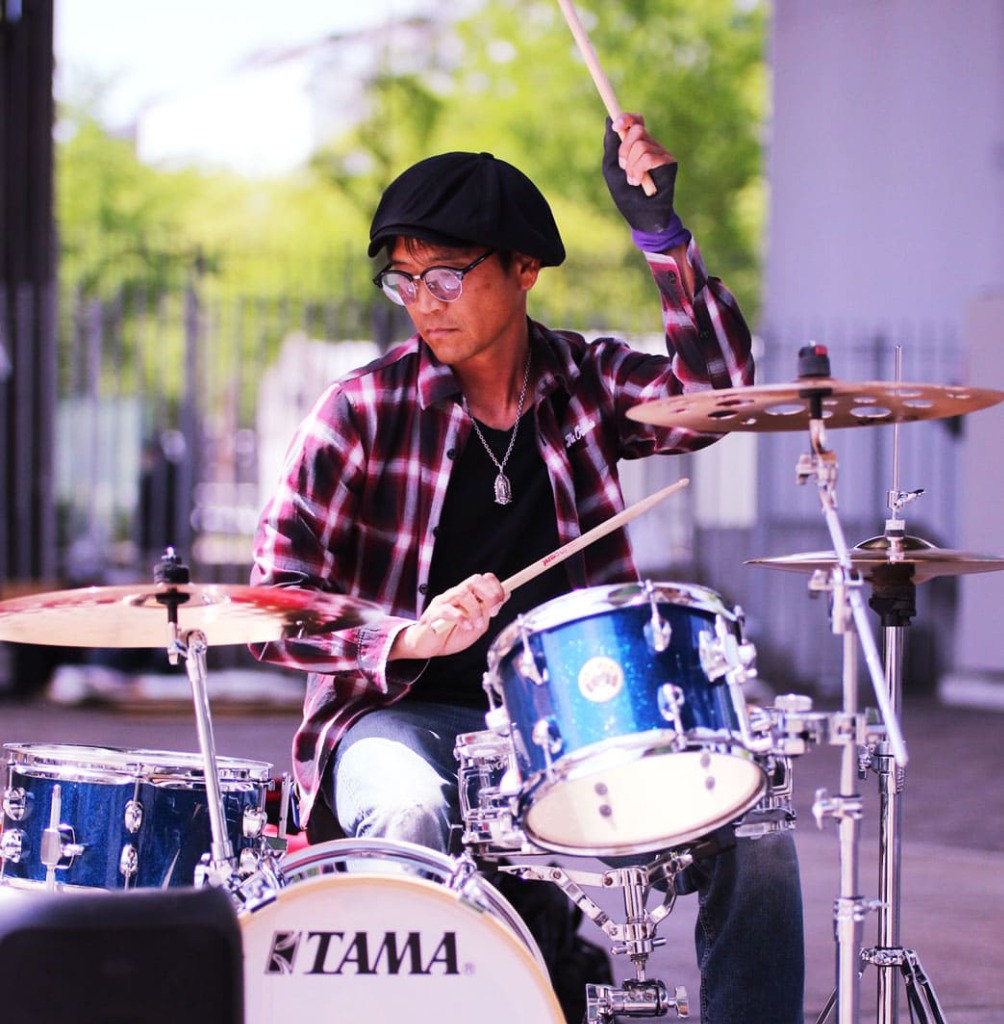 普段は、作曲、ギター、ベースの演奏も行い、これらを録音したものに合わせてドラムを叩いています。